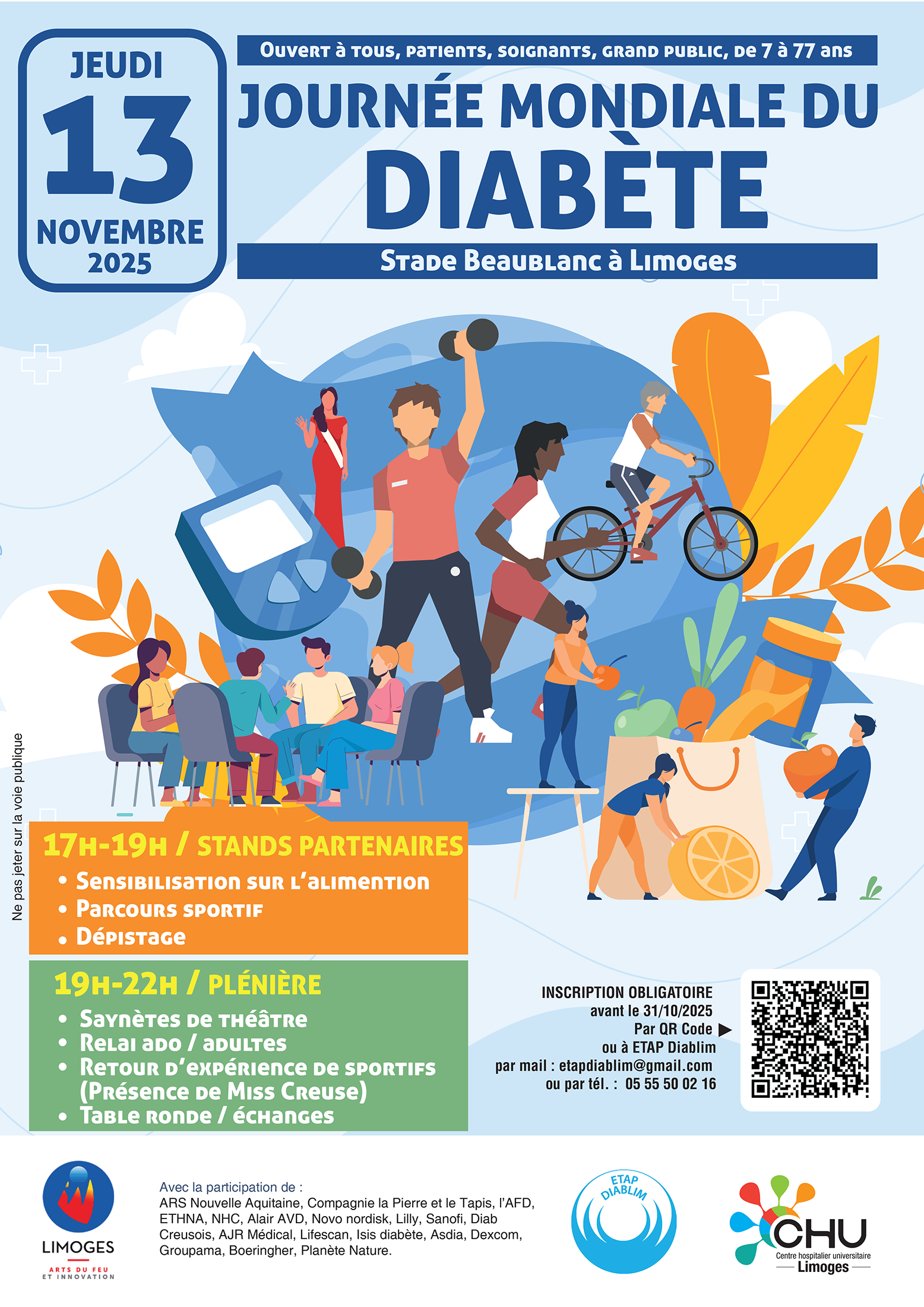 Dans le cadre de la journée mondiale du diabète, rendez-vous au stade de Beaublanc à Limoges le jeudi 13 novembre 2025.