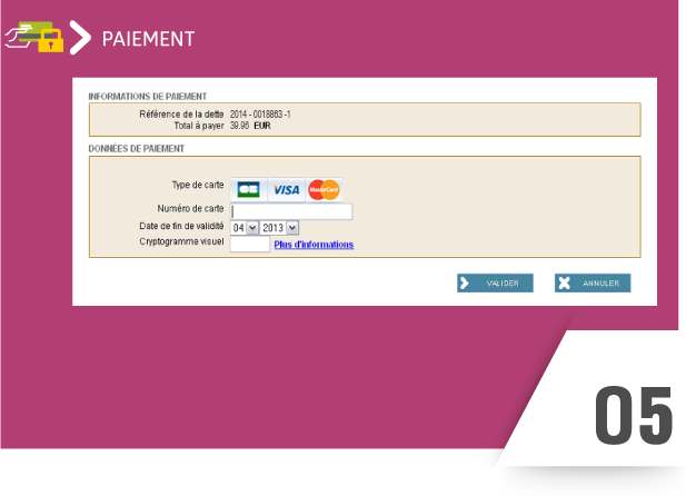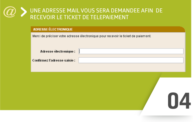 Une adresse mail vous sera demandée, afin de recevoir le ticket de télé-paiement.