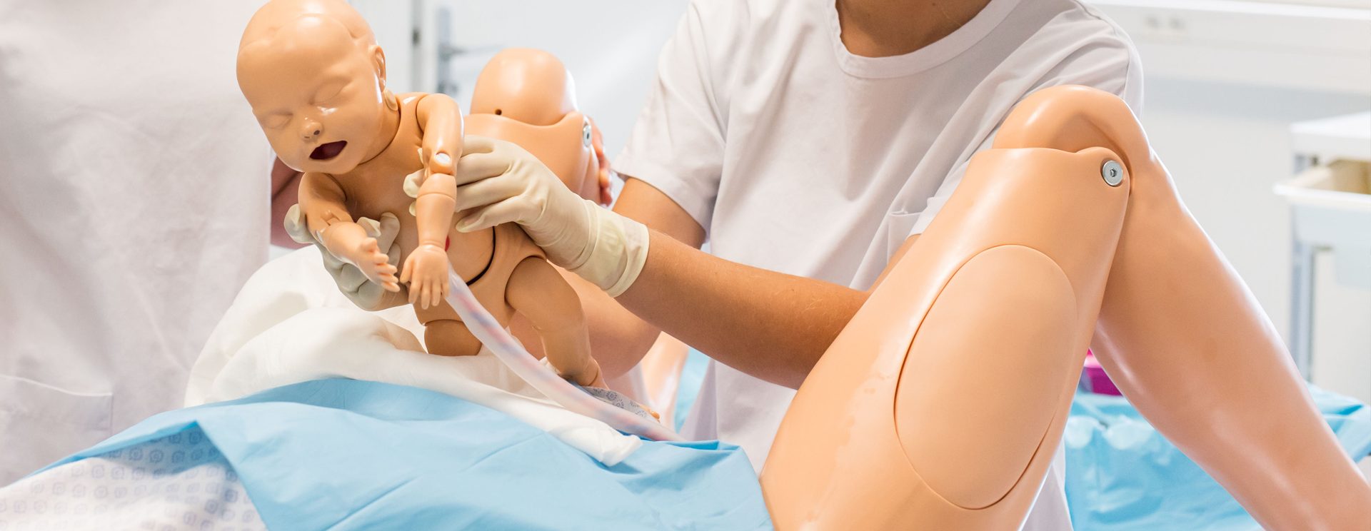 La simulation fait partie intégrante de la formation de sage-femme. Le principe « jamais la 1ère fois sur le patient » est en œuvre à l’école. La simulation avec des mannequins haute fidélité permet de former les futurs professionnels à des urgences peu fréquentes (réanimation du nouveau-né, accouchement compliqué). Ces situations demandent une adaptation rapide tant d’un point de vue gestuel qu’organisationnel et en communiquant efficacement. Tous ces points sont travaillés lors des débriefings qui suivent chaque mise en situation. Tout au long de la formation, les étudiants bénéficient de séances de simulation avec une progression dans l’apprentissage.