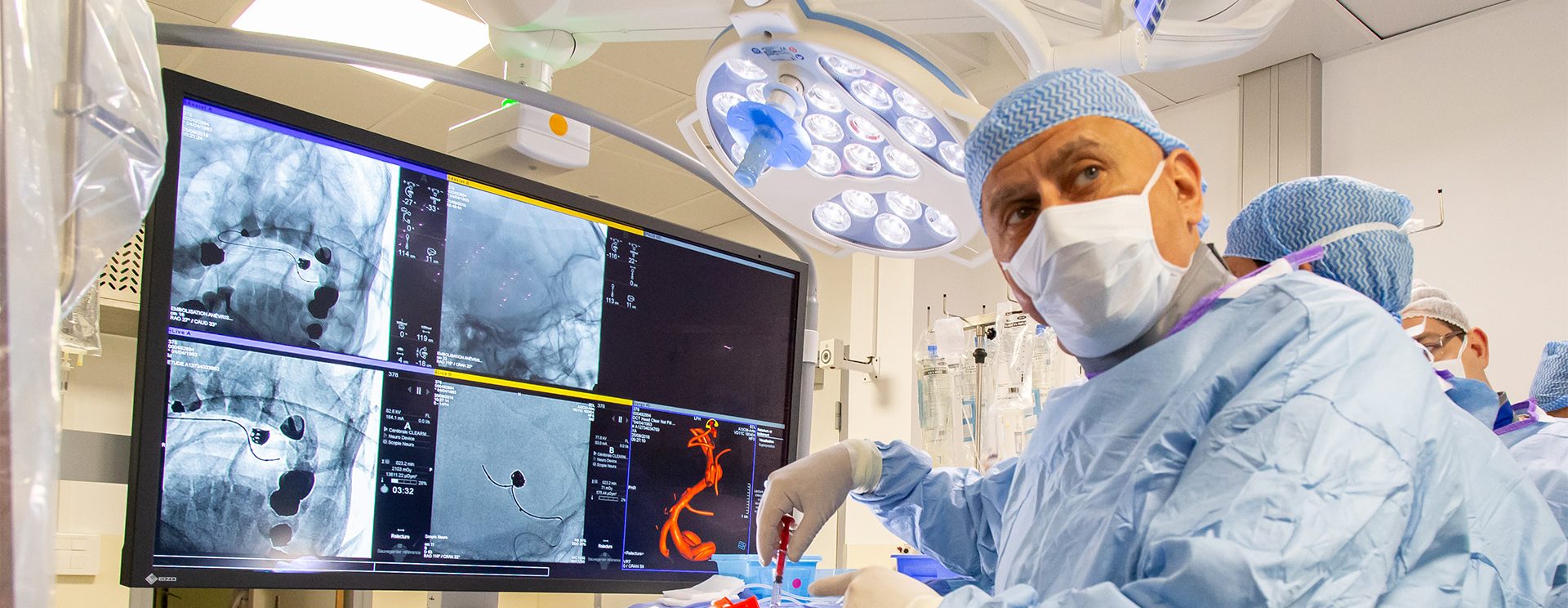 - Les pathologies vasculaires cérébro-spinales à potentiel hémorragique : Anévrysmes intracrâniens, Malformations artério-veineuses cérébrales, Fistules durales, Malformations vasculaires de la moelle épinière et de ses enveloppes